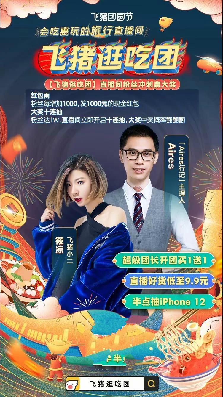 一言蔽之,飞猪逛吃团“周三直播间”的后备军力是垂直类应用无法比拟的,这也是飞猪的核心优势。
