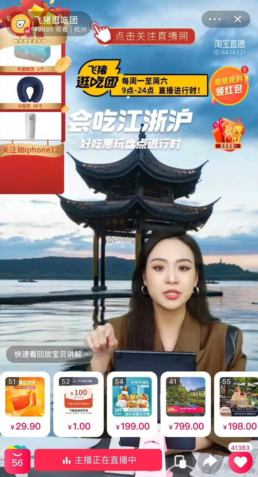 此时,也许是携程最担心的事情终于发生了,飞猪官方直播间在旅行直播赛道再度加码:飞猪逛吃团每周三的重头戏“周三直播间”,